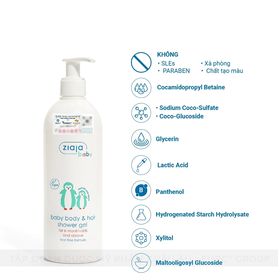 Gel Tắm Gội 2in1 Cho Trẻ Từ 6 Tháng Tuổi Ziaja Baby Giúp Làm Sạch Nhẹ Nhàng Và Cấp Ẩm Cho Da Bé 400ml - Dr Thêm