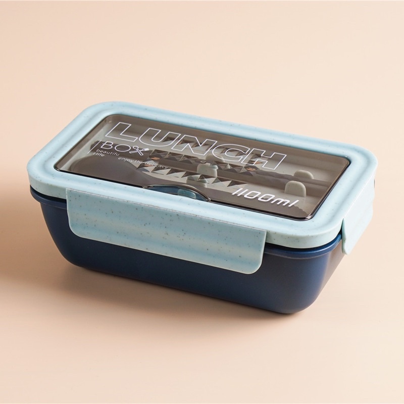 Hộp đựng cơm giữ nhiệt lúa mạch thiên nhiên Lunch Box 850ml kèm muỗng đũa lúa mạch