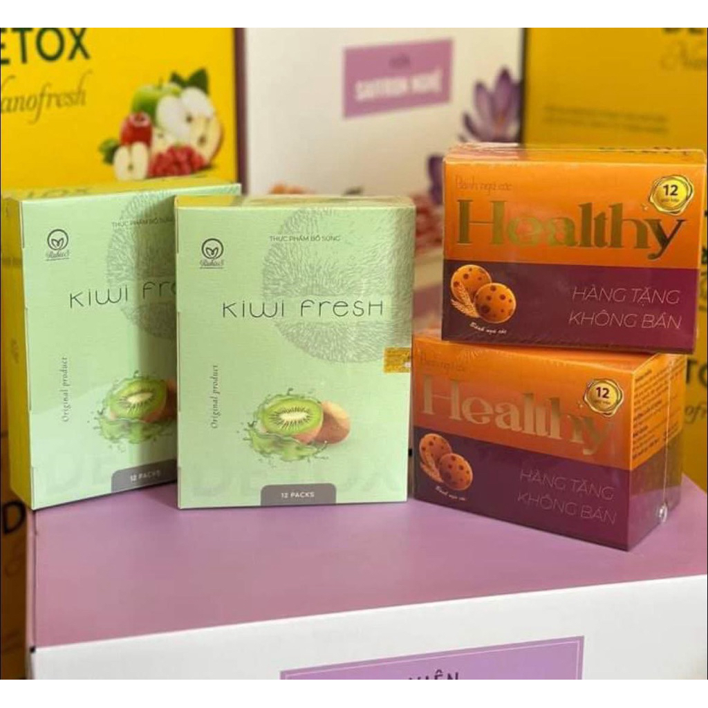HÀNG TẶNG KO BÁN Rubiss Detox Kiwi Fresh, Nước Ép Kiwi Rubiss Giảm Cân, Hộp 12 Gói Tặng Kèm Bánh Health