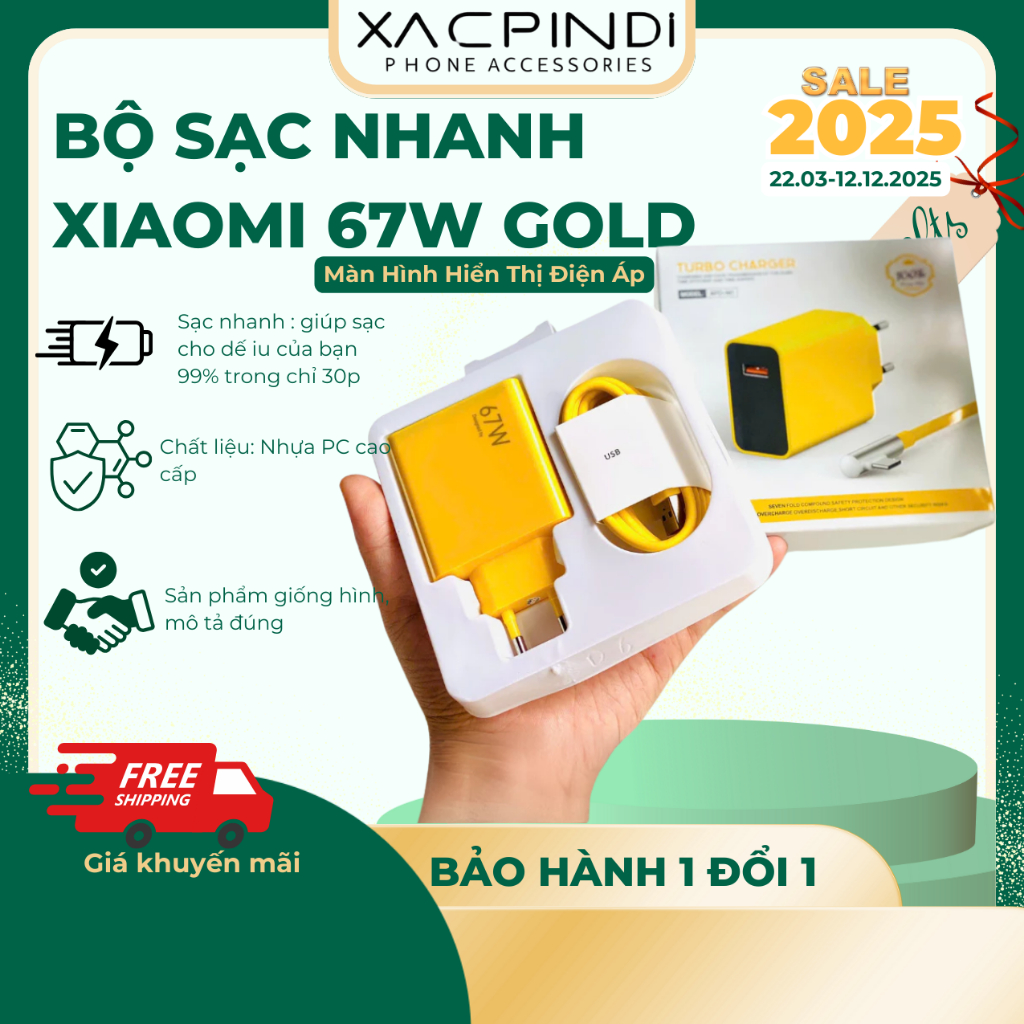 Bộ Sạc Siêu Nhanh 67W – Hỗ Trợ Xiaomi Sạc Tối Đa – Màn Hình Hiển Thị – Củ Sạc + Dây Type-C