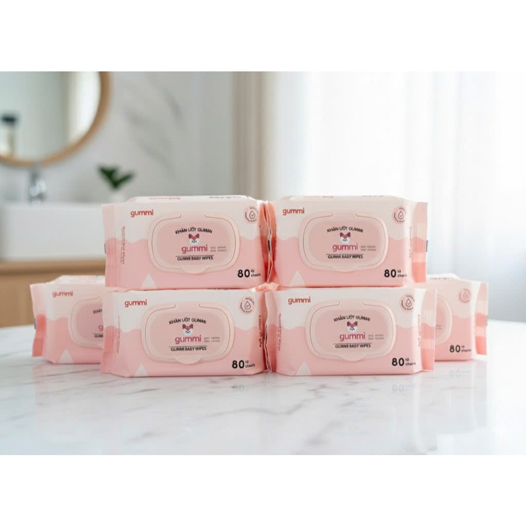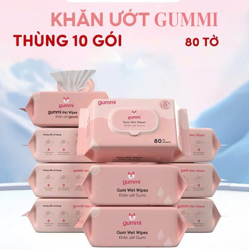 Thùng 10 gói khăn uớt đa năng 80 tờ Gummi không cồn không parabens cao cấp
