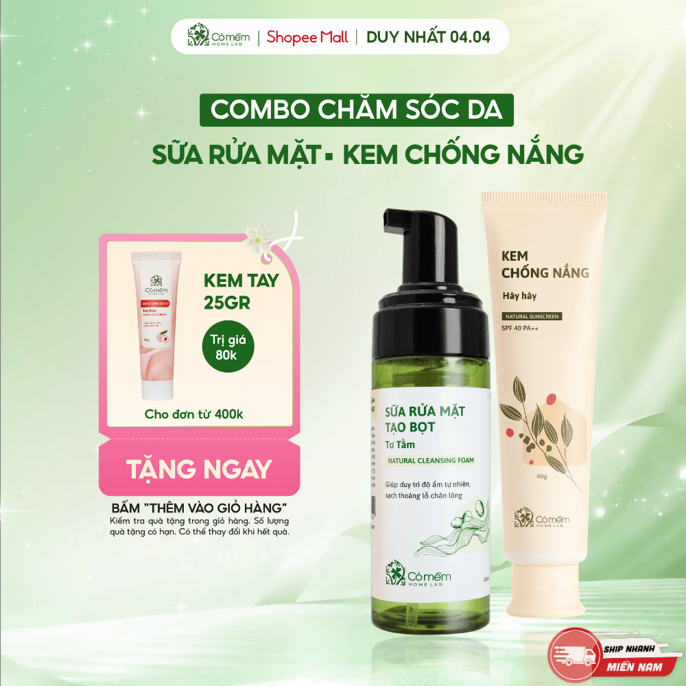 [COMBO] Bộ Chăm Sóc Da Gồm Kem Chống Nắng & Sữa Rửa Mặt Tạo Bọt Cỏ Mềm