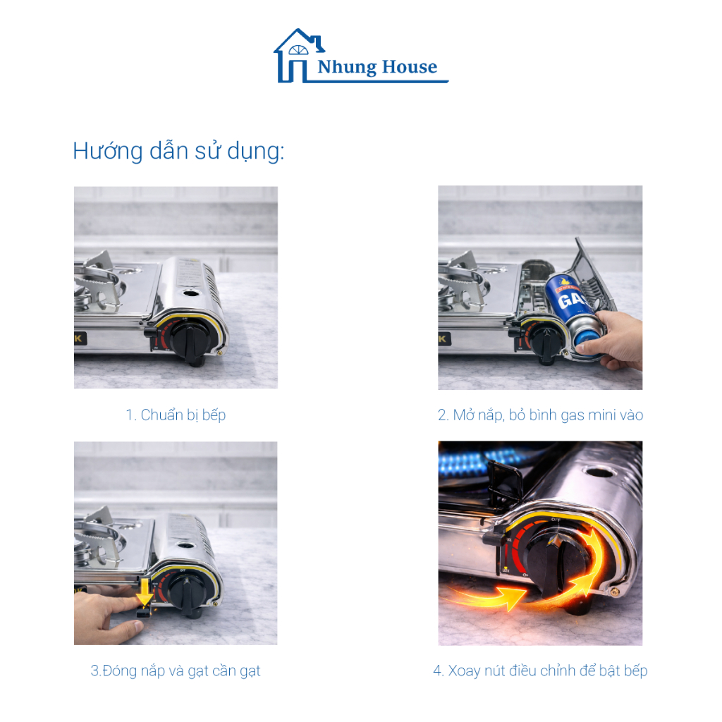 Bếp gas mini Inox HakiCook khung dày chắc tay, kiềng Inox chắc dày dặn, Inox không rỉ