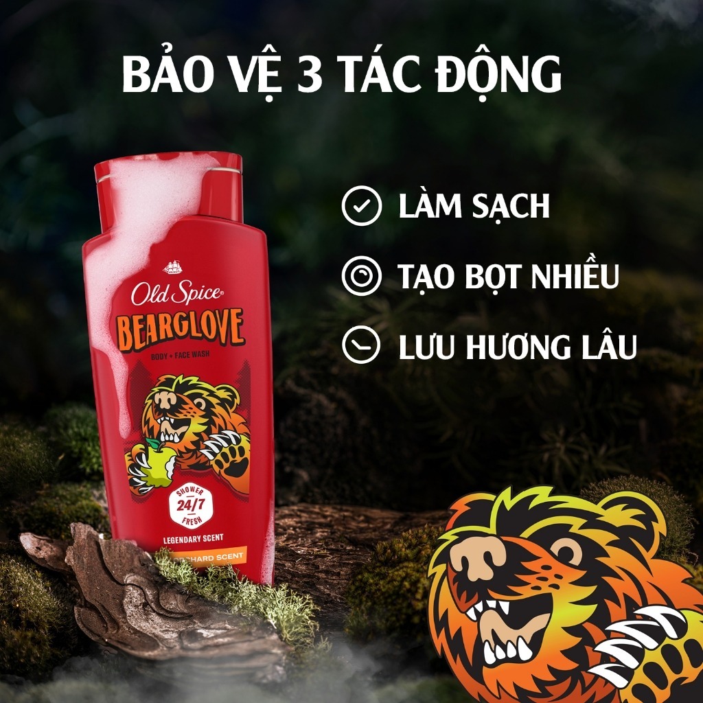 Combo 2 chai Dầu Gội Xả 2in1 650ml & Gel Tắm 473ml OLD SPICE tiện lợi, Hương Nước Hoa, Bearglove Bản Lĩnh - Mỹ