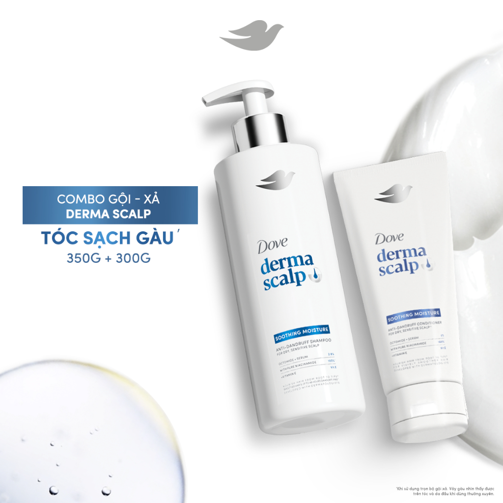 Combo Gội Xả Sạch Gàu & Tóc Mềm Mượt Dove Derma Soothing Mới 350G, 300G'
