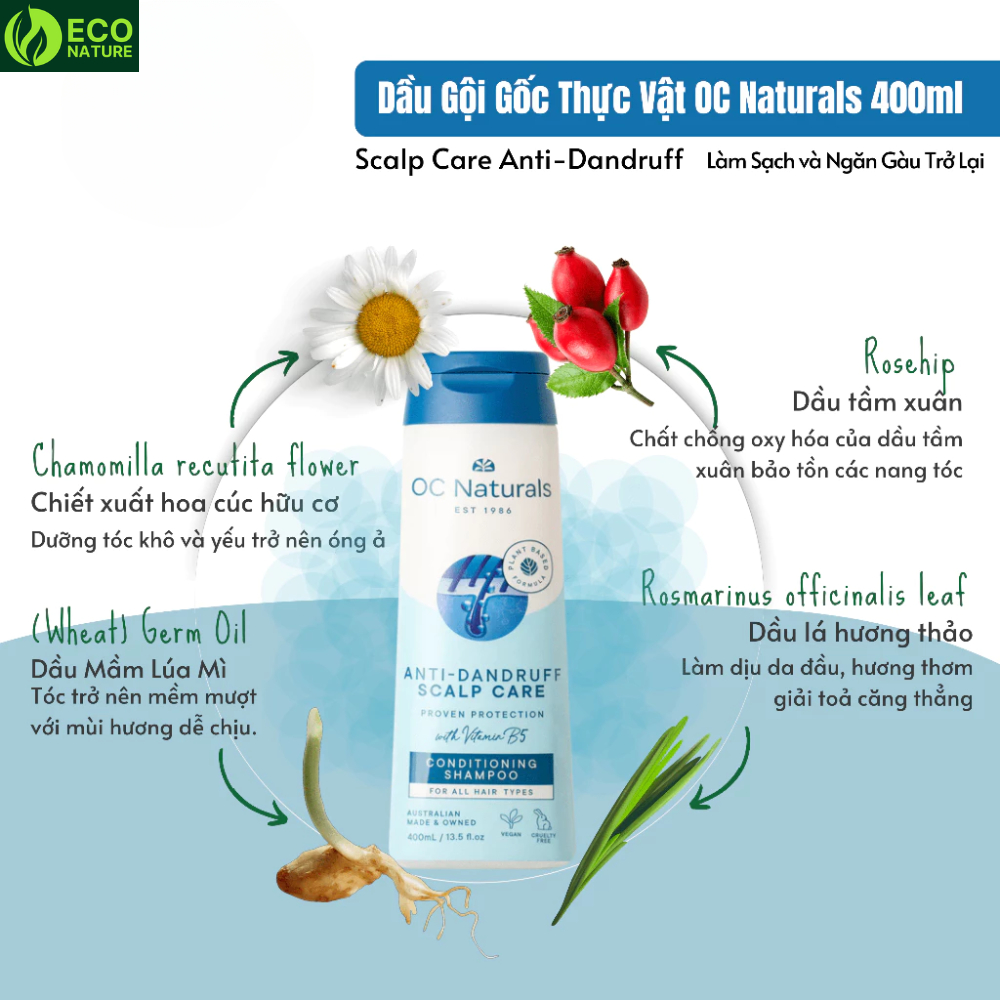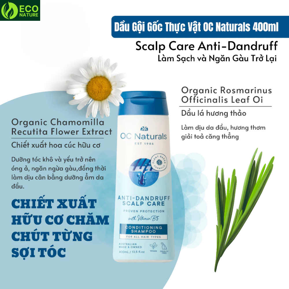 Dầu gội hữu cơ chuyên trị gàu cho nam và nữ Oc Natural - 400ml - NK Úc