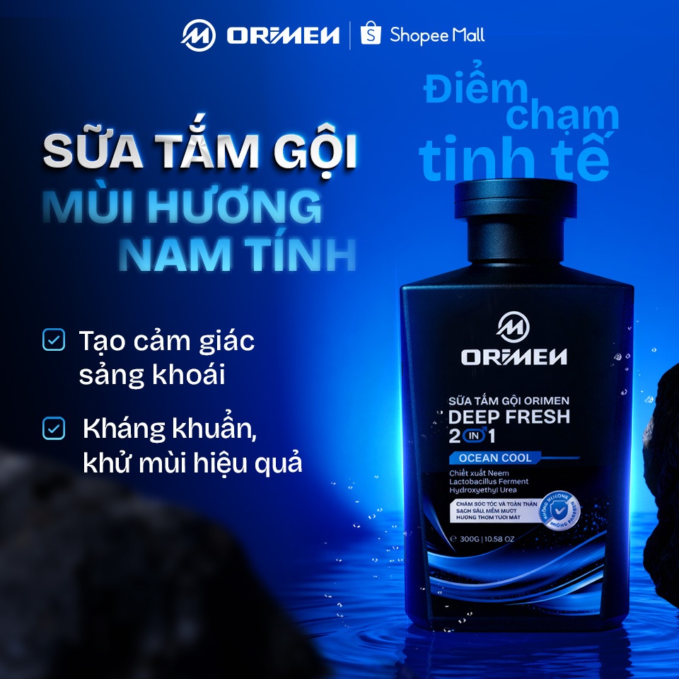 Sữa tắm gội nam 2in1 hương nước hoa nam tính, hỗ trợ làm sạch sâu, cấp ẩm Orimen 220ml