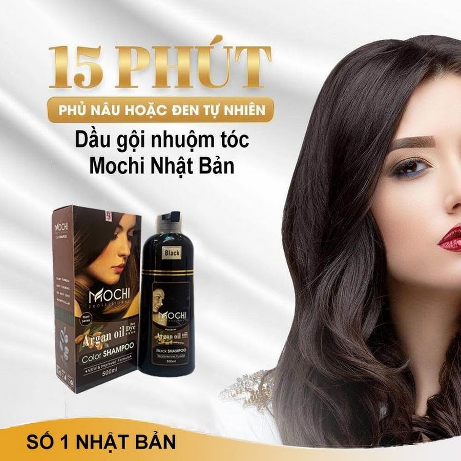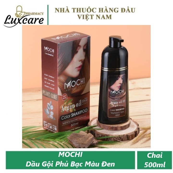 Dầu Gội Phủ Bạc Mochi Màu Đen - Giúp Tóc Đen Óng Mượt - Chai 500ml - Luxcare
