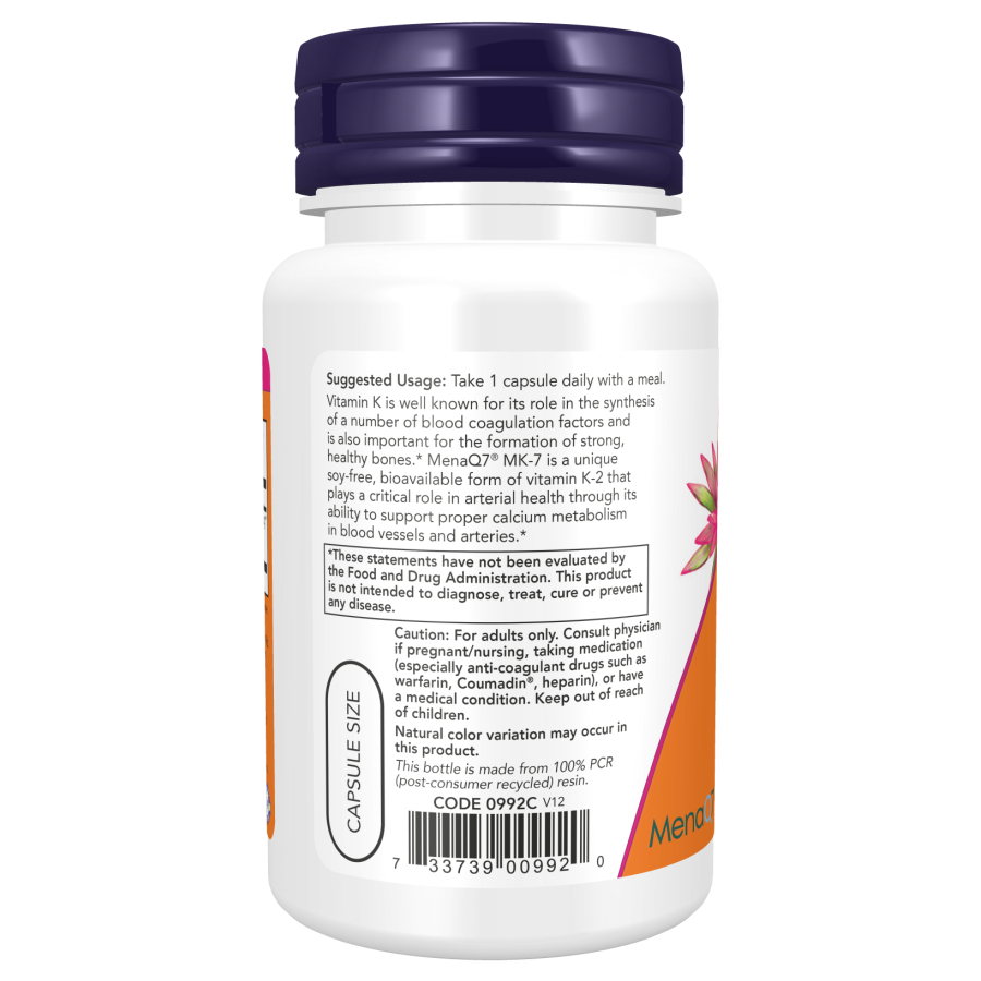 Viên uống Vitamin K2 MK7 100 mcg (Mỹ) hỗ trợ phòng ngừa loãng xương, xơ vữa, suy tim, cao huyết áp