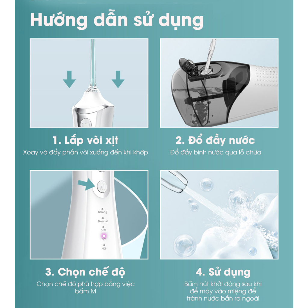 Tăm nước DOJI cao cấp chính hãng, Chống nước tốt, Công suất mạnh, Tặng kèm vòi xịt, dây sạc USB
