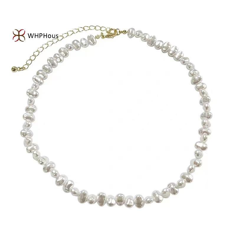 < WHPHous-t > Vòng cổ ngọc trai Baroque dành cho nữ Dây chuyền xương đòn thời trang đơn giản Vòng cổ Choker màu trắng Trang sức đám cưới