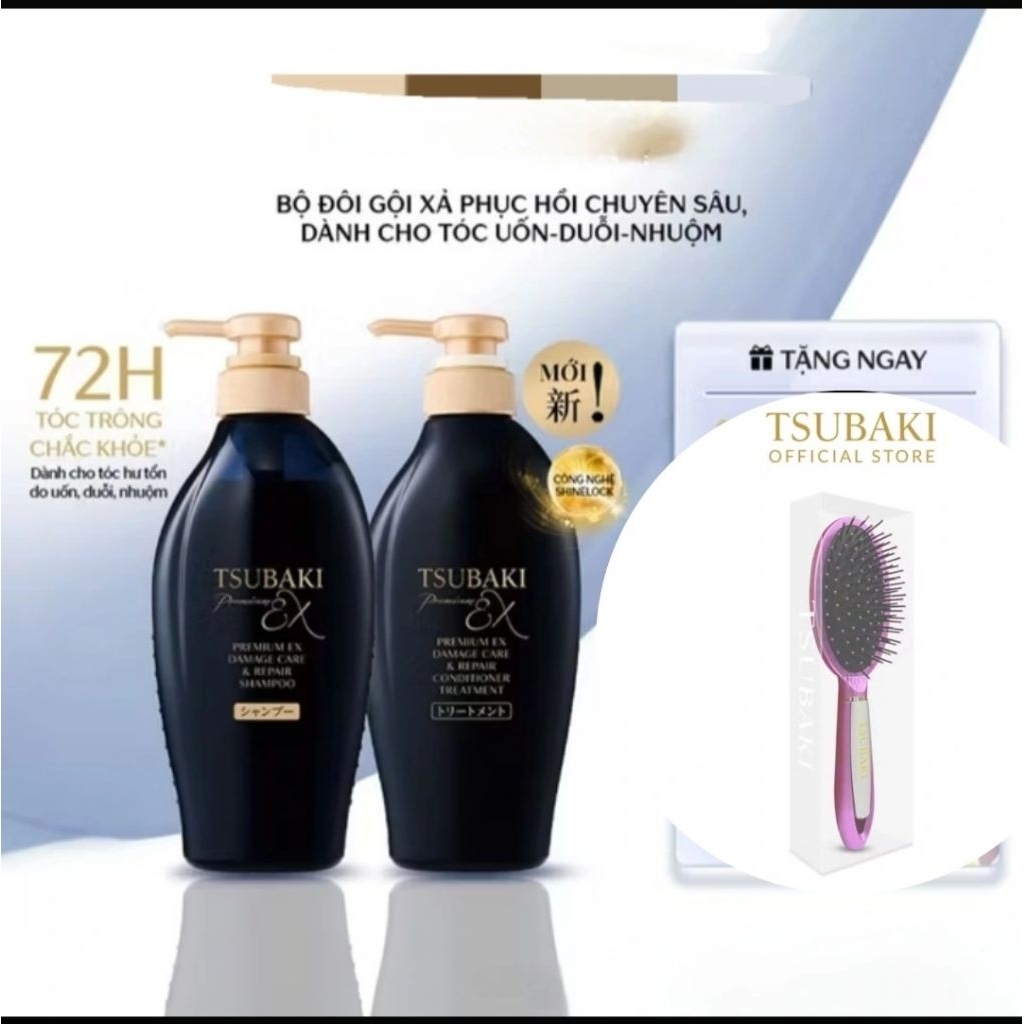 [COMBO TẶNG LƯỢC] Dầu Gội Phục Hồi Chuyên Sâu Tsubaki Premium Ex Damage Care & Repair Shampoo 450ml