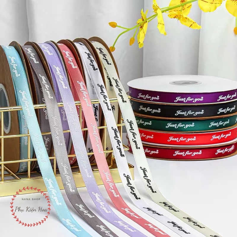 [Cuộn 22m/45m] Dây Ruy Băng Lụa Chữ ❤️JUST FOR YOU❤️ Bản 1cm, Hàng Loại 1, Nhiều Màu Sắc, Trang Trí Quà Tặng - Bó H