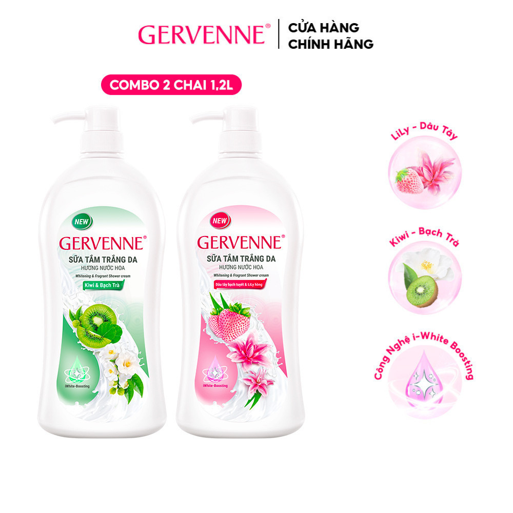 Combo 2 Sữa tắm trắng da 1.2L hương nước hoa Gervenne