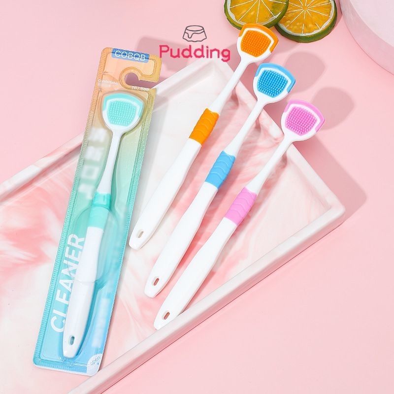 🍧Pudding🍧Dụng Cụ Vệ Sinh Răng Miệng Cạo Lưỡi Silicon, Combo Gel & Bàn Chải Lưỡi Cạo Sạch 99% Vi Khuẩn, Loại Sạch Mảng Bám Lưỡi