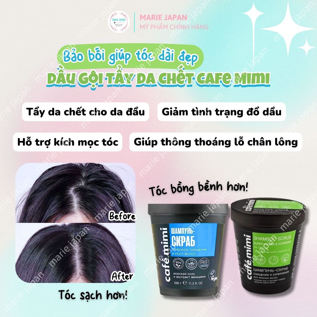 Dầu Gội Tẩy Da Chết Da Đầu Shampoo Scrub Cafe Mimi Giảm Dầu, Giúp Mọc Tóc Nga - Hủ 330g