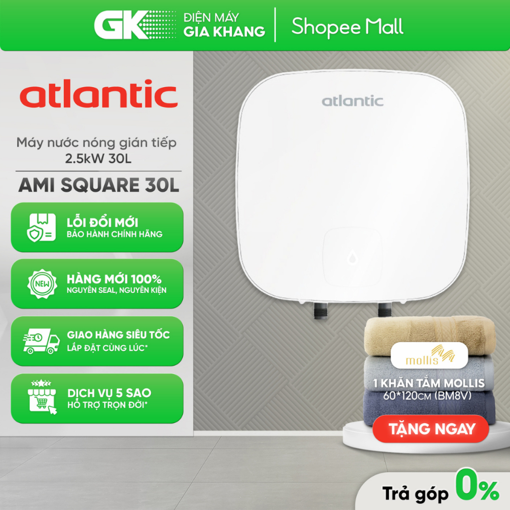 [Shopee - Lắp đặt 0Đ HN HCM] Máy Nước Nóng Gián Tiếp ATLANTIC 2500W AMI SQUARE 30L