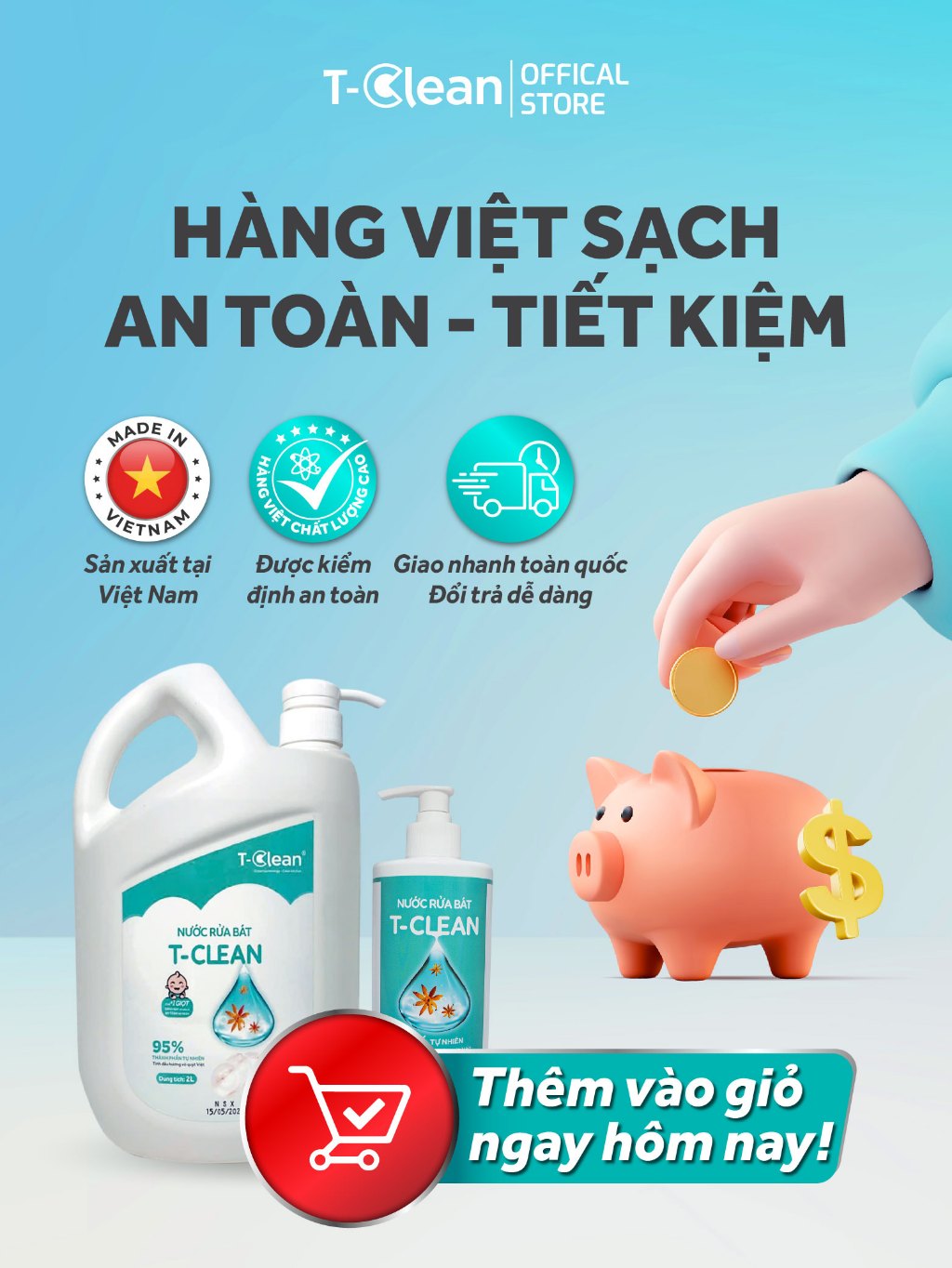 Nước Rửa Chén bát T-Clean 95% thiên nhiên, an toàn da tay trẻ nhỏ, tiết kiệm