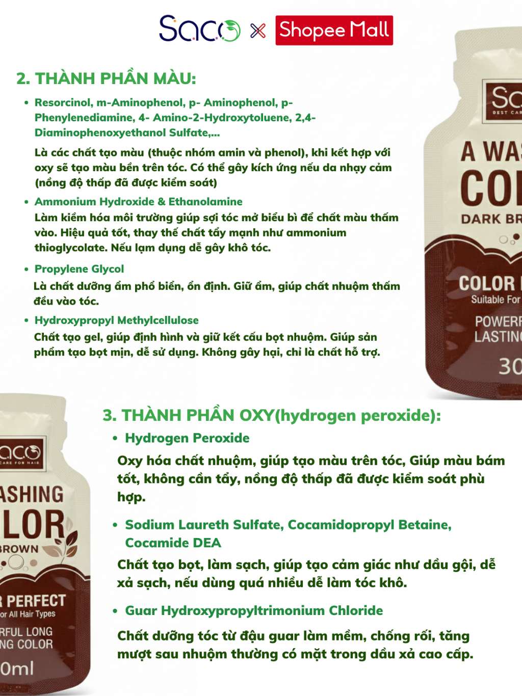 Dầu gội nhuộm tóc tạo bọt thảo dược SACO lên màu tự nhiên dưỡng mượt tóc 30ml/gói