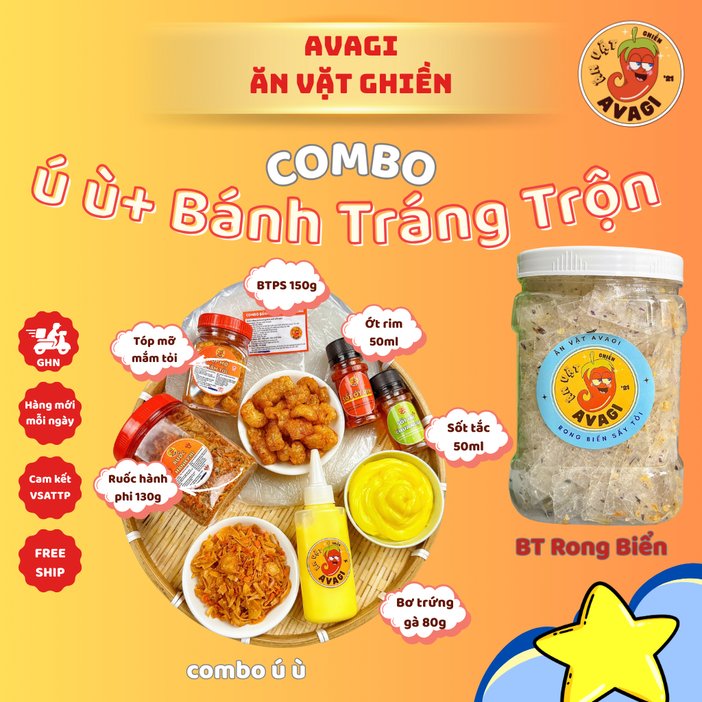 (Freeship) ( Bánh Tráng Phơi Sương, COMBO Ú Ù + Bánh Tráng Trộn Hành Phi Thơm Ngon, Ăn Vặt AVAGI