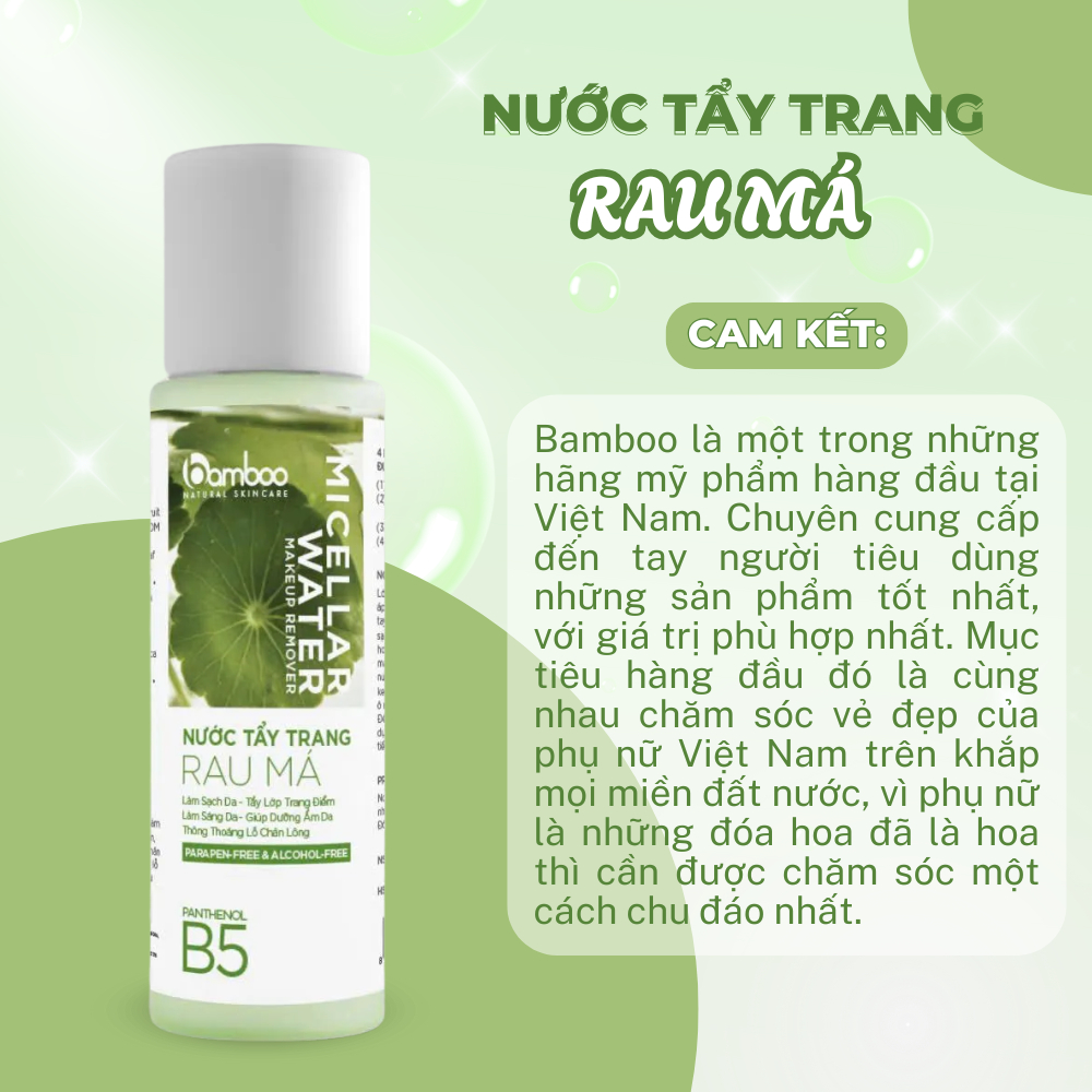Nước tẩy trang rau má BAMBOO làm sạch sâu, ngừa mụn, phục hồi da nhạy cảm, không gây khô rát