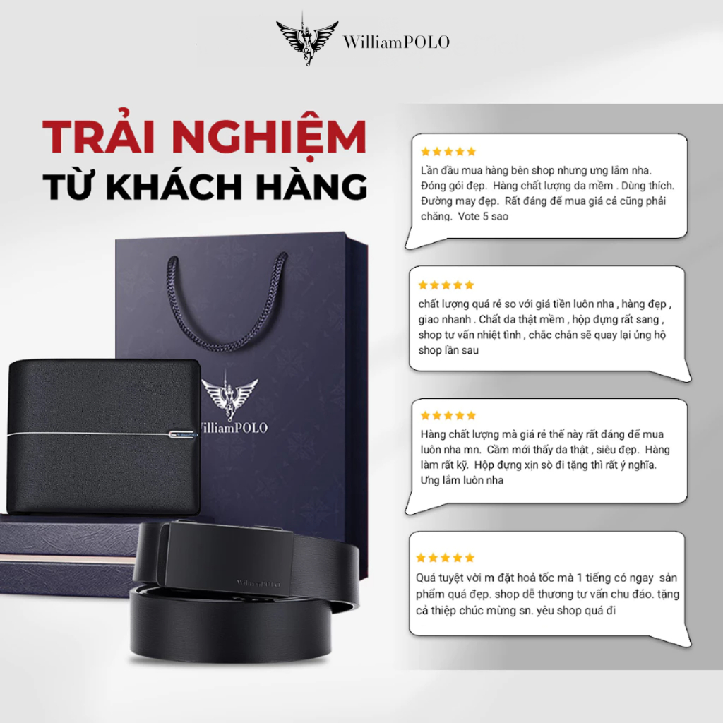 Ví nam phối họa tiết viền cao cấp Williampolo, bóp nam da bò thời trang lịch lãm POLO211546