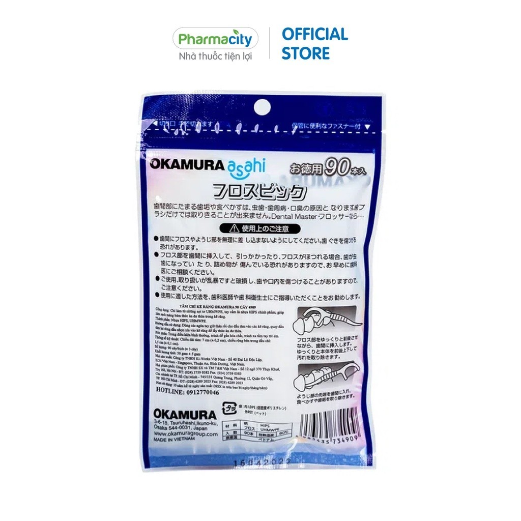 Tăm chỉ Okamura nha khoa hỗ trợ làm sạch mảng bám(90 cây/gói)