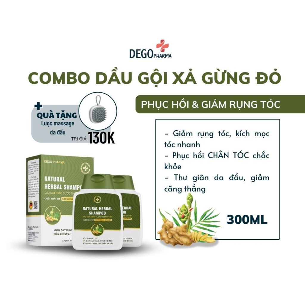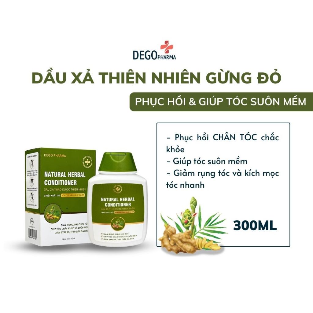 Dầu Gội Gừng đỏ DEGO PHARMA 300ml Dược Liệu Tinh Chất Gừng Đỏ - Phục Hồi Tóc Hư Tổn & Giảm Rụng Tóc