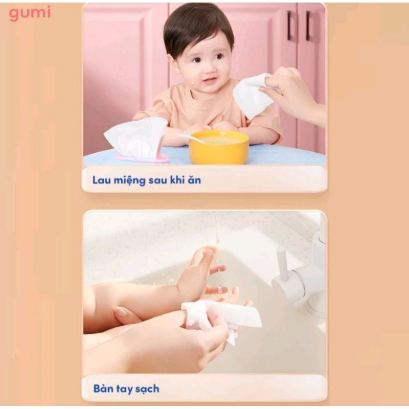 Thùng 10 gói khăn ướt 100 tờ Gumi không cồn,không parabens cao cấp dành cho bé