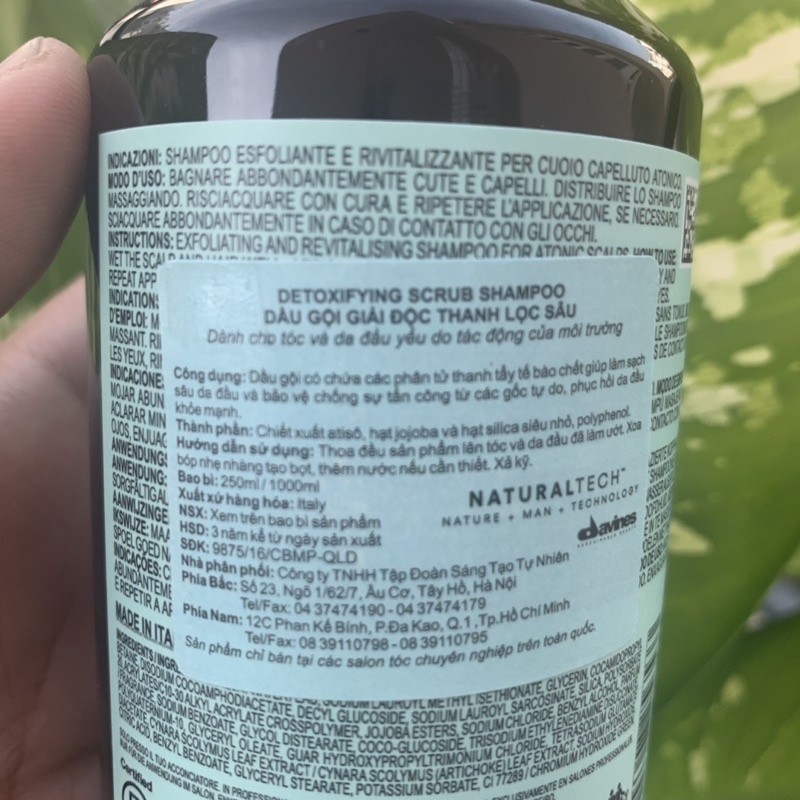DẦU GỘI TẨY TẾ BÀO CHẾT VÀ THANH LỌC GIẢI ĐỘC CHO DA ĐẦU DAVINES DETOXIFYING SCRUB SHAMPOO