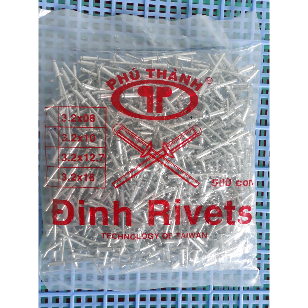 Đinh rút Rivet Phú Thành 3x10, 3.2x12.7, 4 x 10, 4x12.7 (Bịch 500 con, Bịch 1000 con)