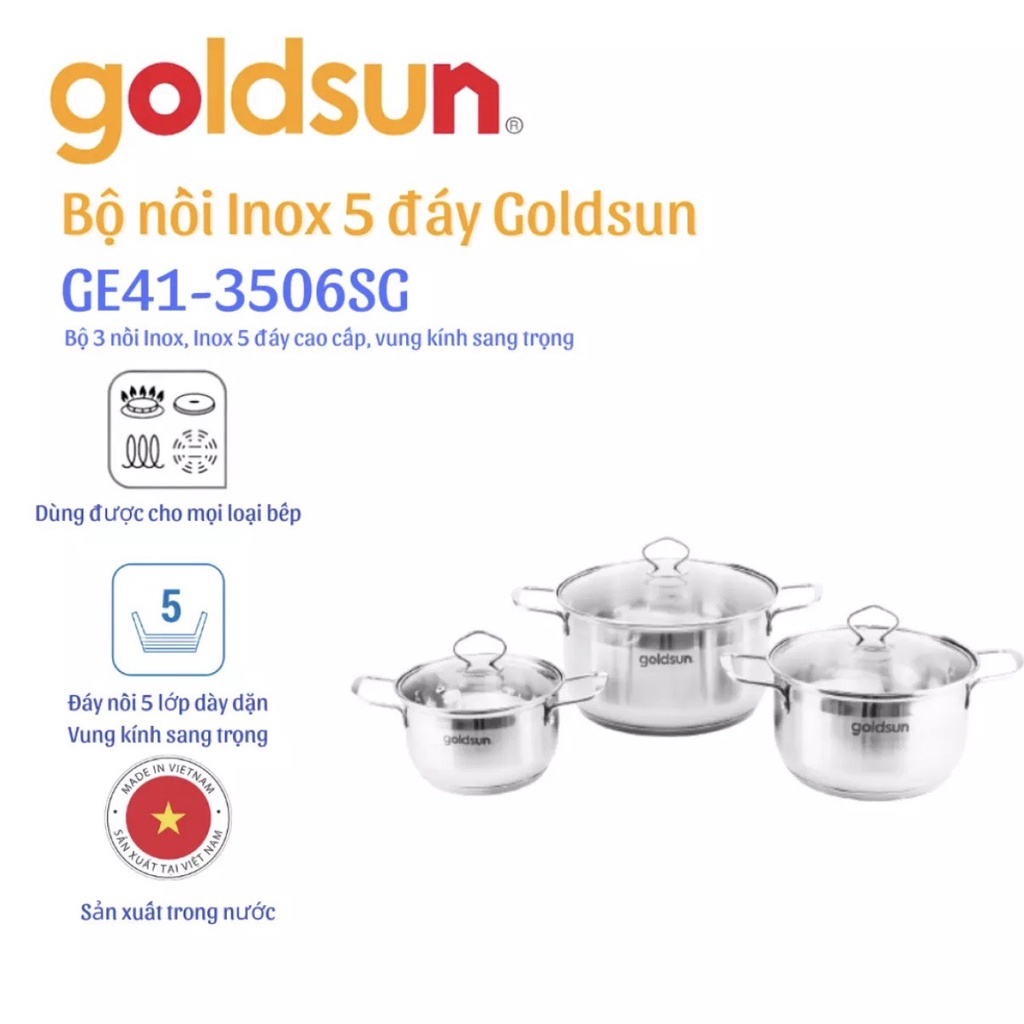 Bộ nồi inox Goldsun 3 đáy và 5 đáy GE35/ GE39/ GE41 ĐÁY TỪ DÙNG CHO MỌI LOẠI BẾP- HÀNG CHÍNH HÃNG
