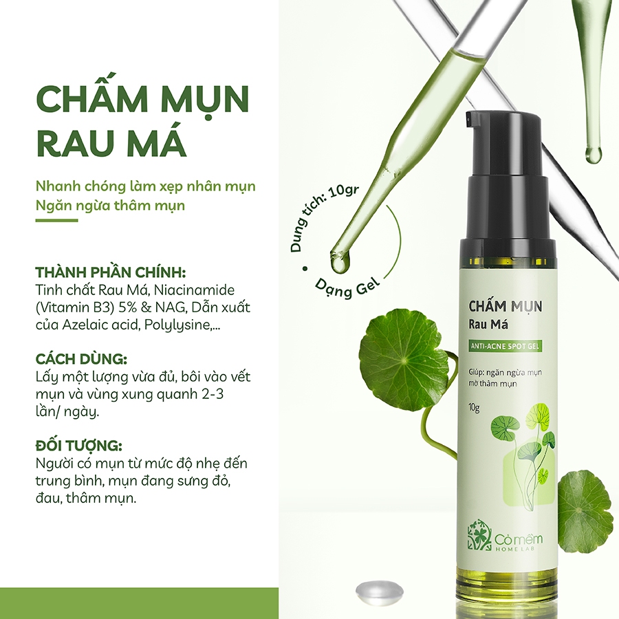 Combo Kiềm Dầu Giảm Mụn Mờ Vết Thâm Mụn Serum Chấm Mụn Rau Má Cỏ Mềm