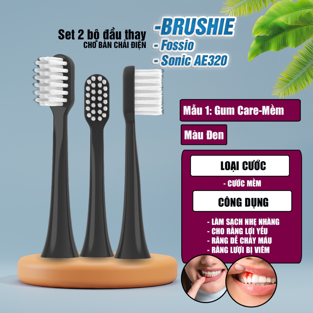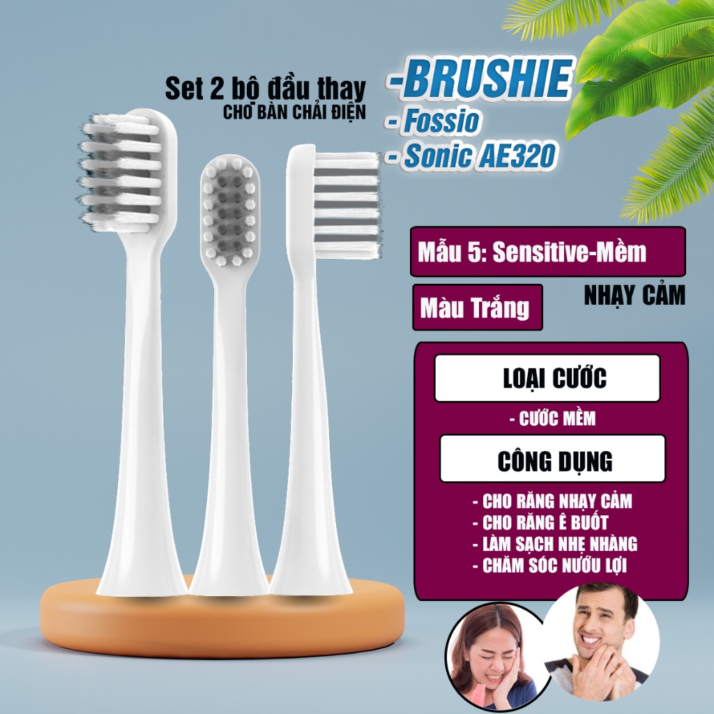 Dành cho máy Brushie, Fossio, Sonic, AE320 bộ 2 đầu bàn chải đánh răng điện, đủ mã Minh House