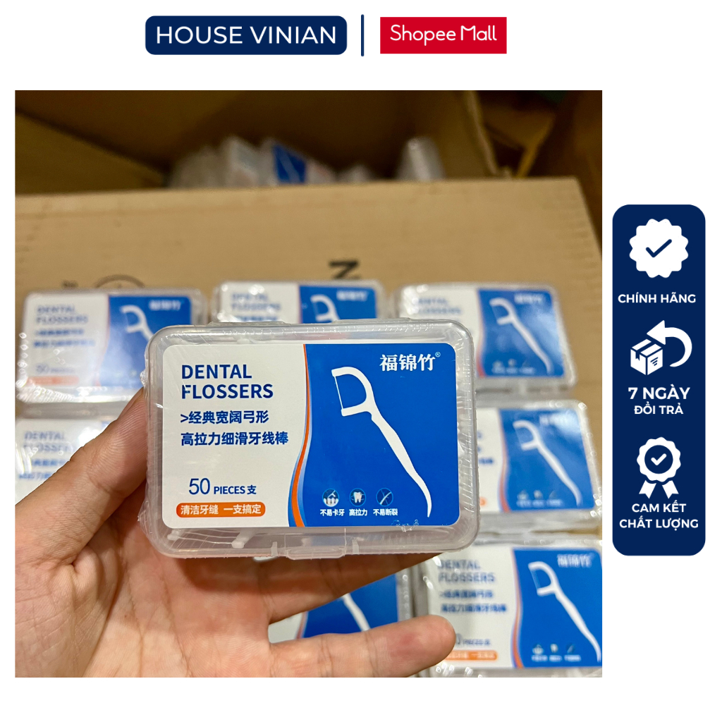 Tăm Chỉ Nha Khoa Nhật Bản VINIAN Chính Hãng Hộp 50 Chiếc Loại Bỏ Sạch Mảng Bám Thức Ăn Ngăn Ngừa Hôi Miệng Sâu Răng
