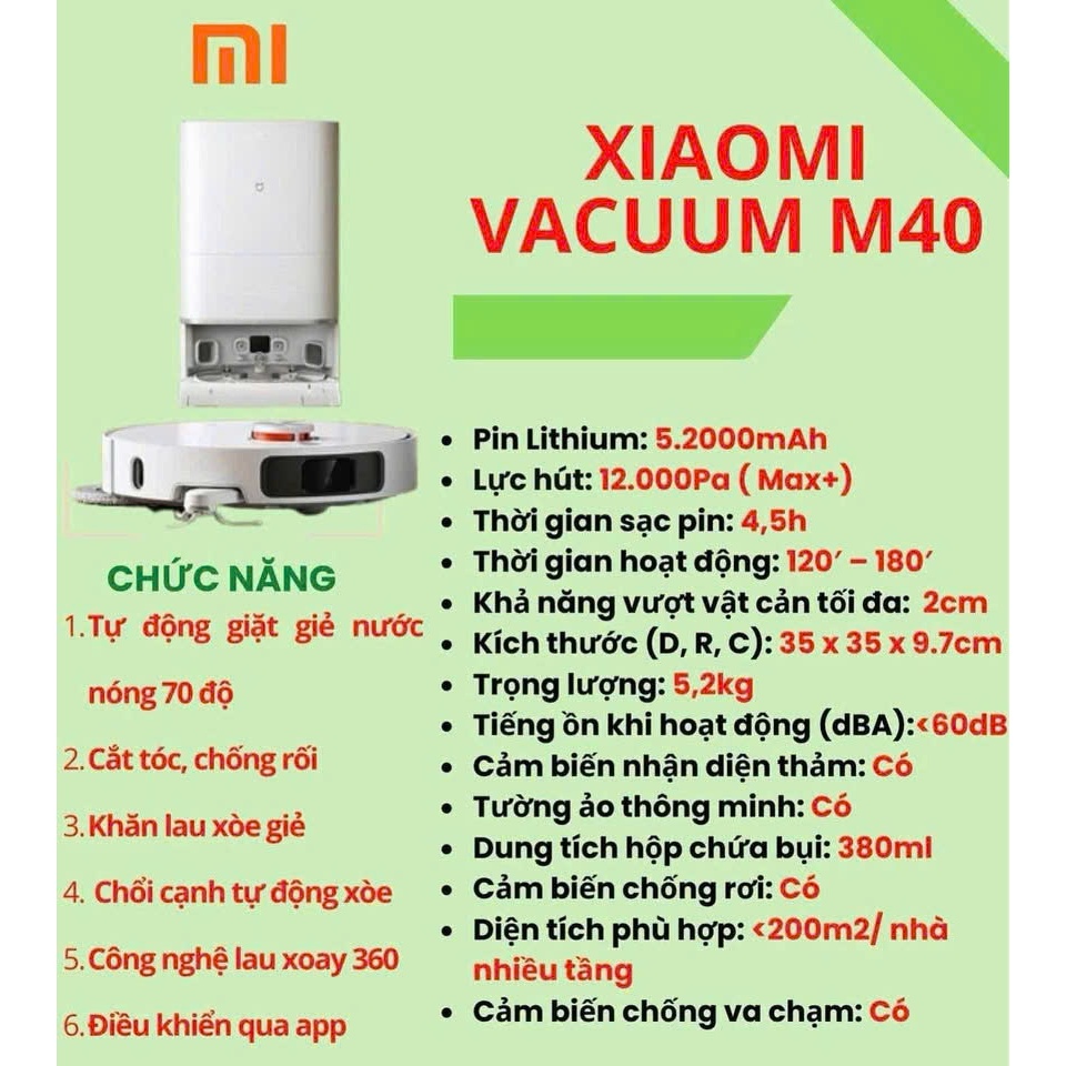Robot hút bụi lau nhà Xiaomi Mijia M40 Hàng Chính Hãng BẢO HÀNH 24 THÁNG