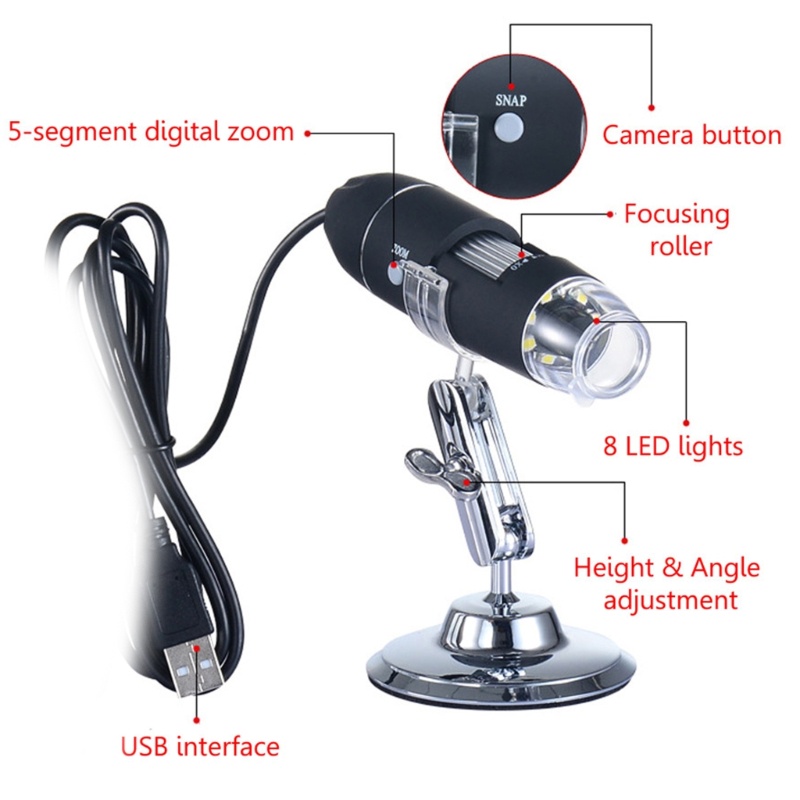 Yjcnelcr 1600X Kính hiển vi nội soi USB Camera kính hiển vi kỹ thuật số Mini cầm tay có chân đế có thể điều chỉnh cho