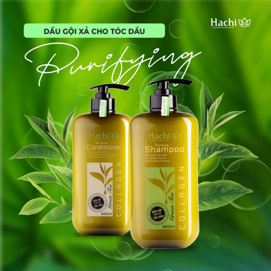 Dầu Gội, Xả Hachi Purifying Green Tea chiết xuất trà xanh dành cho tóc dầu bết