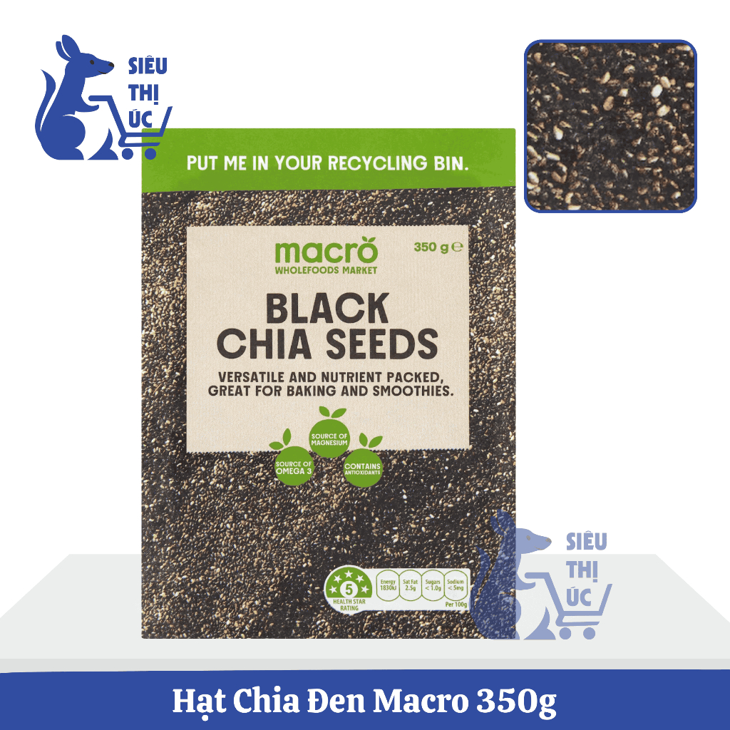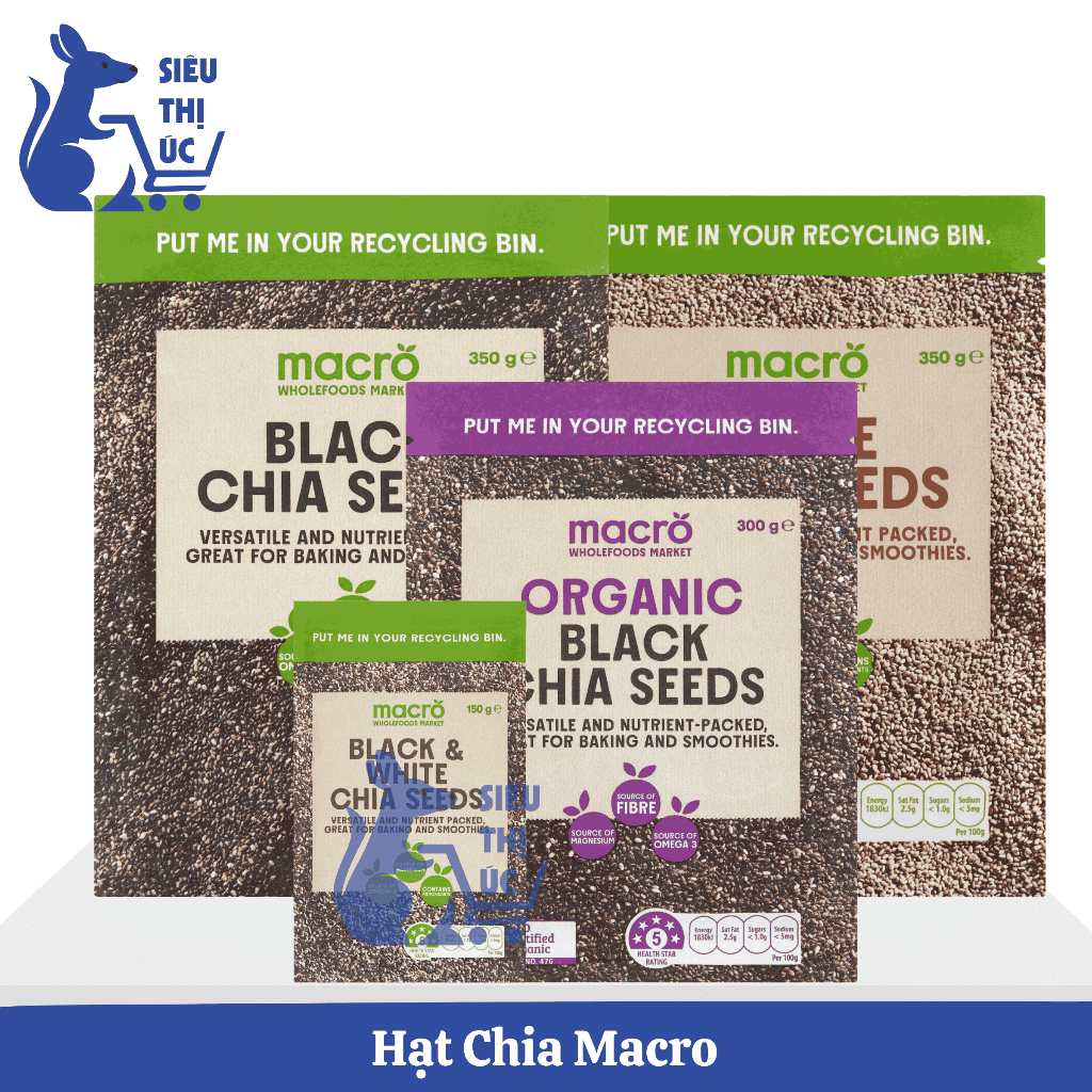 Hạt Chia Úc Macro | Nhiều Loại | Đen – Đen & Trắng – Organic