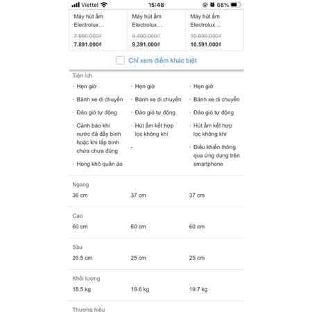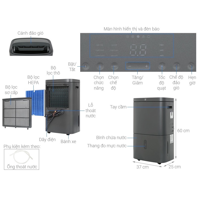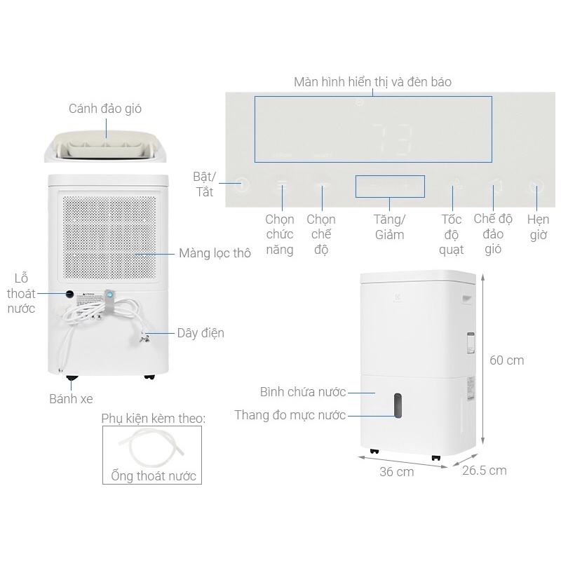 Máy hút ẩm Electrolux EDH10TRBW1 (20L) EDH12TRBD2 (24L) EDH14TRBD2 (27L)