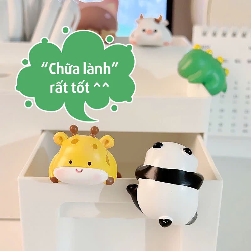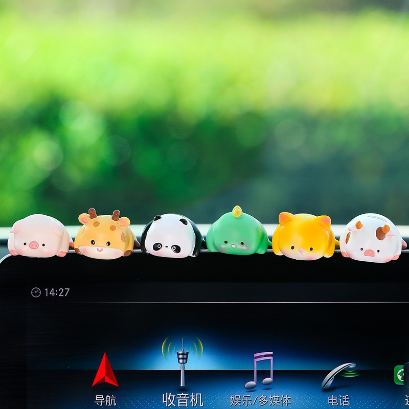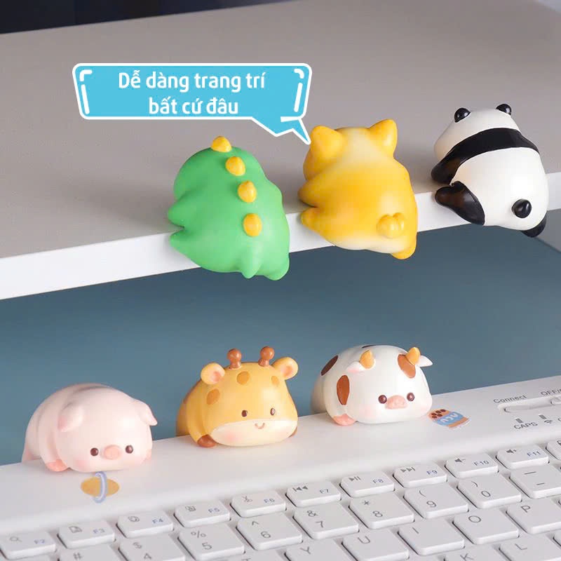 HEMISTORE96 Mô hình 6 con vật mini dễ thương, trang trí xe hơi, xe máy, bàn học, bàn làm việc, máy tính, kính, taplo