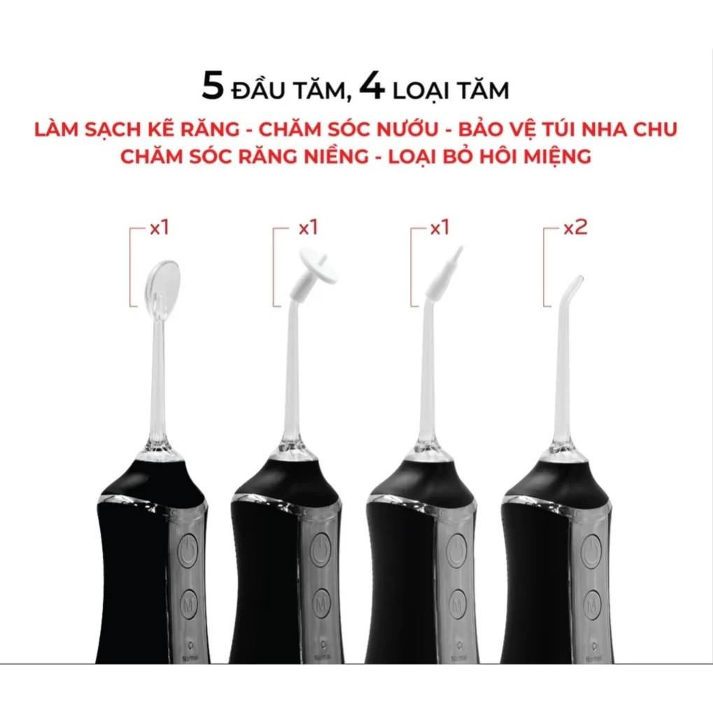 Máy Tăm Nước KAW - 3 chế độ Hàng Chính Hãng Phụ Kiện Kèm 5 Đầu Tăm phiên bản mới dung tích 300ml