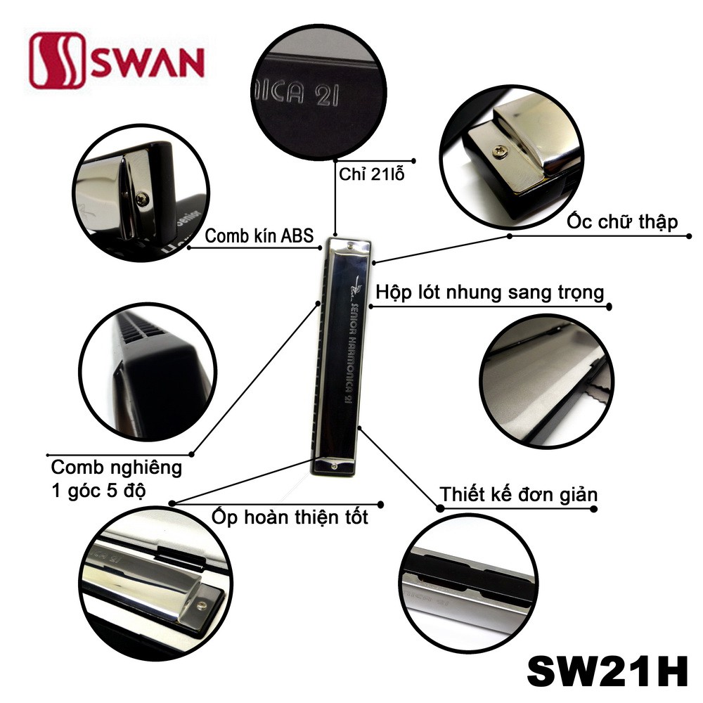 Kèn Harmonica Tremolo Swan Senior SW21H Comb Kín Key C