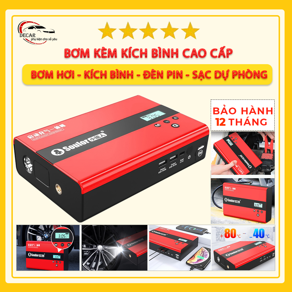 Kích bình kèm bơm lốp ô tô xe hơi soulor ,kích điện bình acquy ô tô đa năng bảo hành 12 tháng
