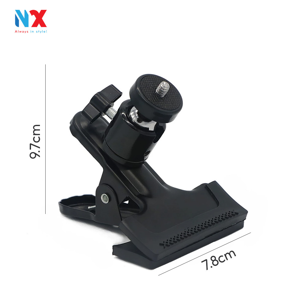 Kẹp kim loại đầu bi xoay 360 độ, kẹp được phông nền, đèn live, điện thoại, khung treo