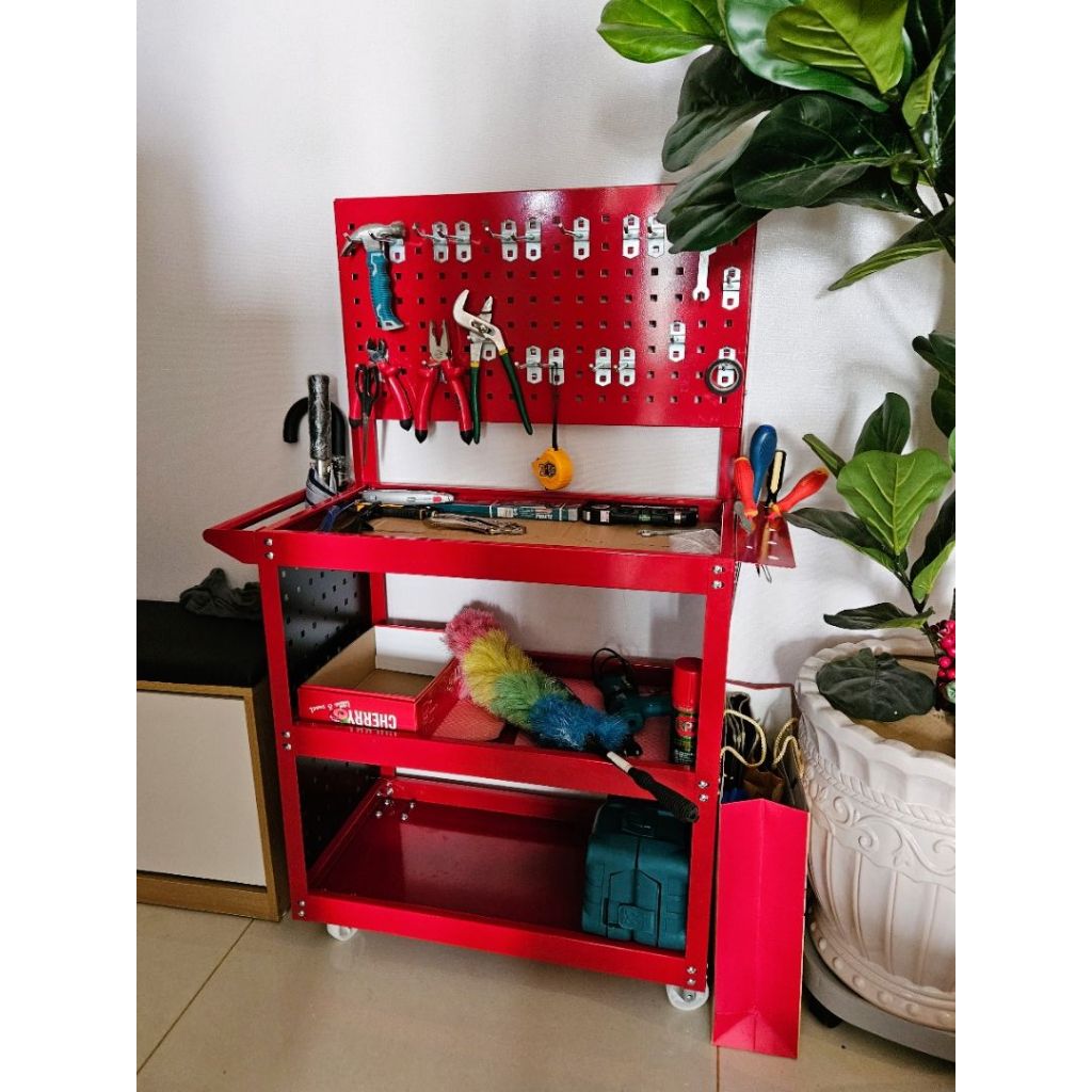 Kệ xe đẩy đồ nghề 3 tầng HTD-010 tặng kèm 20 móc treo
