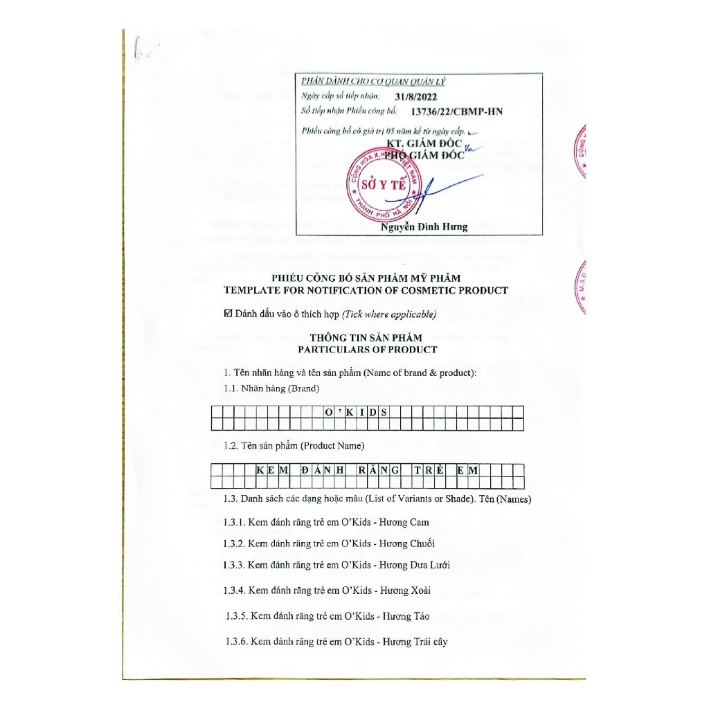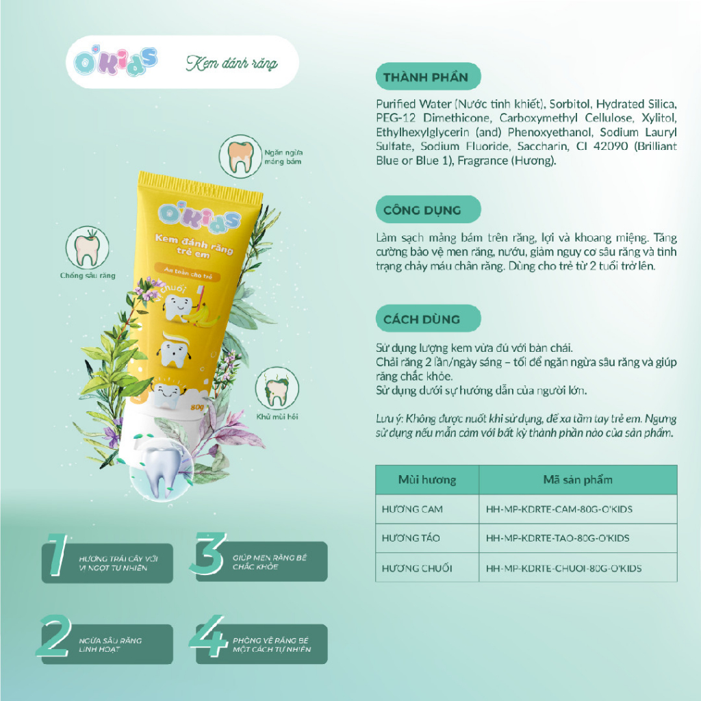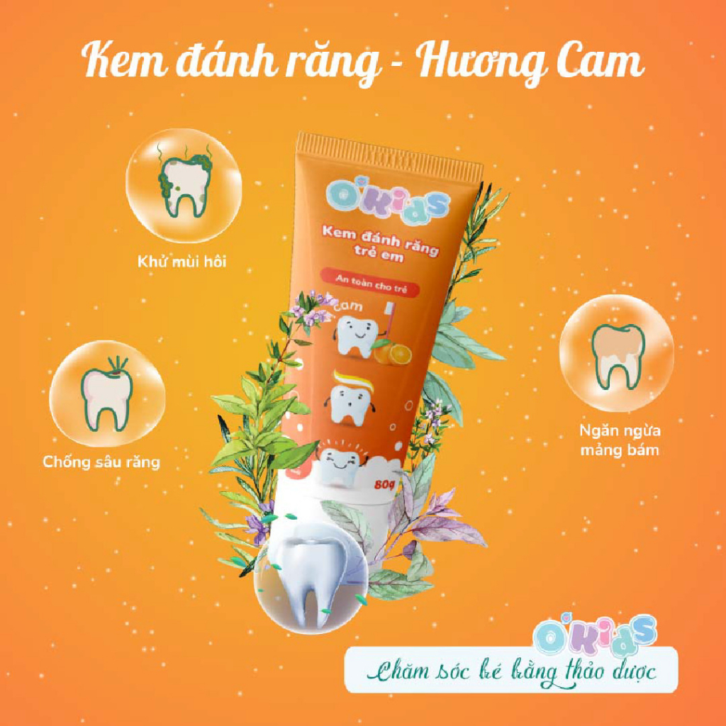 [XẢ HSD 7.2026] Kem đánh răng trẻ em O'KIDS vị cam giúp men răng bé chắc khỏe 80g