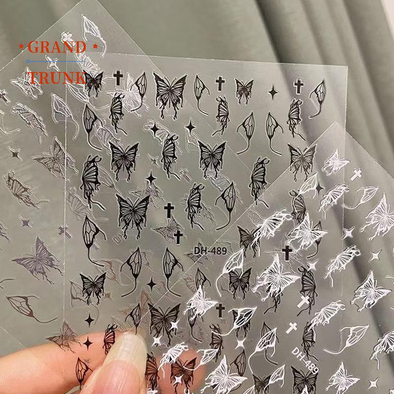 [GRAND-t] Bạc Đen Trắng Bướm 3D Miếng Dán Móng Tay Ngôi Sao Kim Loại Đóng Đinh Dính Thanh Trượt Quấn Gel Làm Móng Tay Ba Lan Đề Can