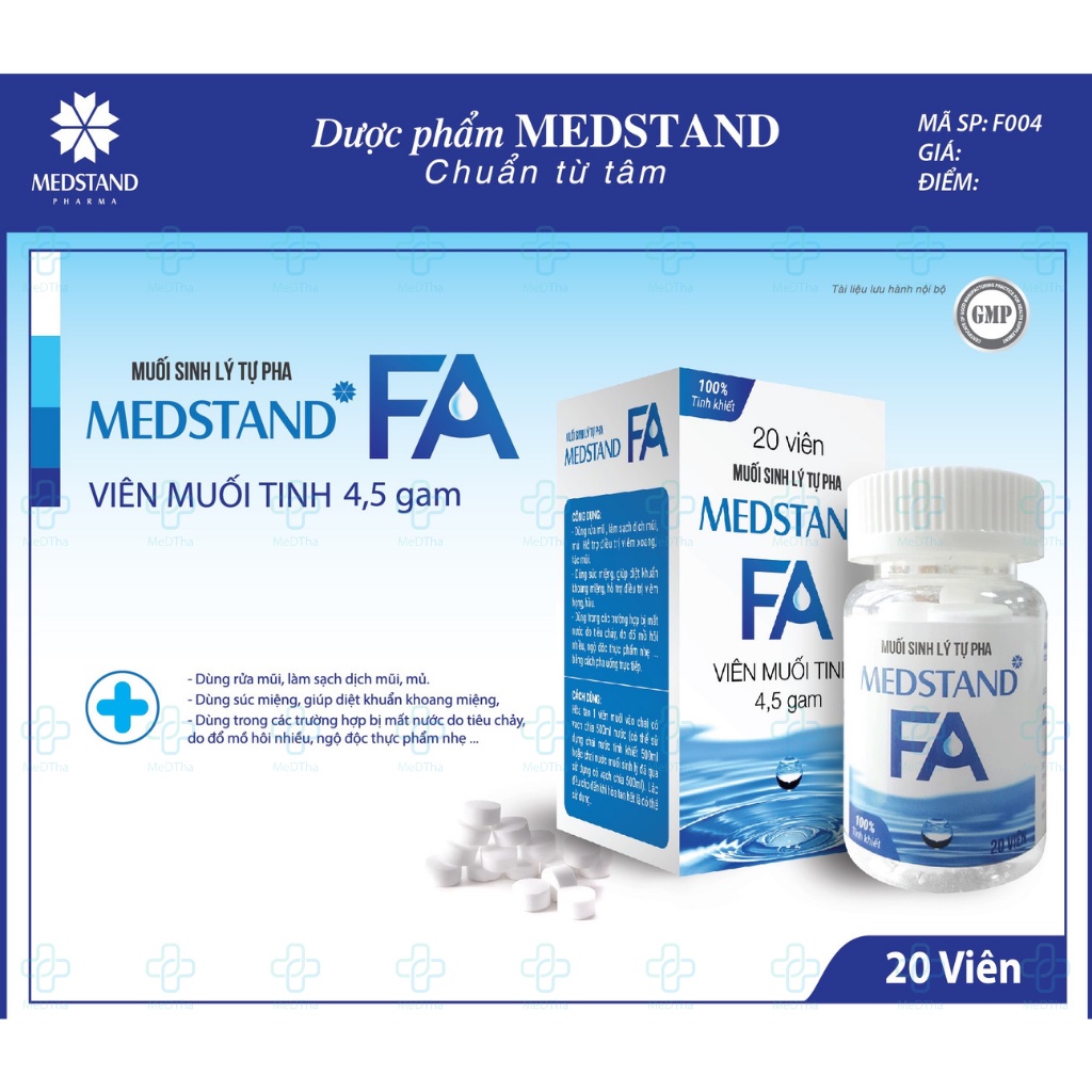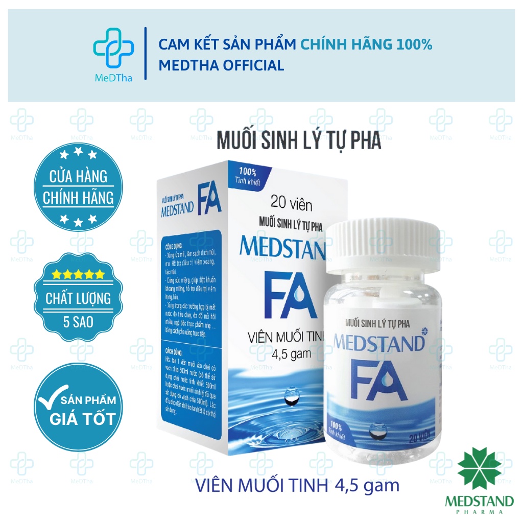 Viên Muối Sinh Lý Tự Pha Medstand FA Viên Muối Tinh, Pha Nước Muối Sinh Lý, Súc Họng, Vệ Sinh Miệng (20v)