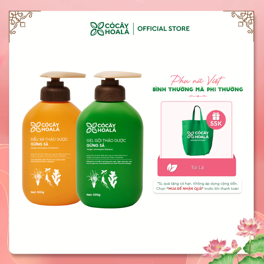 Combo Dầu Gội/xả Thảo Dược Cỏ Cây Hoa Lá Gừng Sả Hỗ Trợ Làm Dày Tóc, Giảm Bết Dầu 500g - ORYA